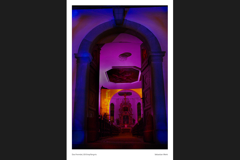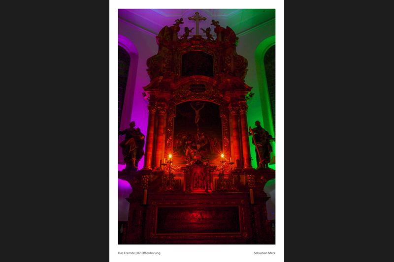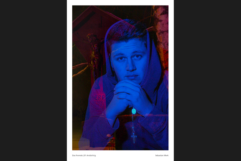 Sebastian Merk über seine Arbeit: »Übernatürliche Kräfte, das Jenseits und allgemein die Idee einer höheren Macht, ist für viele Menschen unbekanntes Terrain. Hauptsächlich ältere Leute besuchen regelmäßig die Gottesdienste und scheinen die Nähe und Existenz von Gott zu spüren. Für die jüngere Generation ist solch ein Verhalten eher befremdlich. Höchstens in tiefster Not und Verzweiflung versucht man sich an eine höhere Macht zu klammern und hofft auf wundersame Hilfeleistung. Was aber, wenn man sich ernsthaft darauf einlässt und das Gebet erhört wird? Kann man Glauben auch wirklich spüren und wie würde eine solche Erfahrung aussehen?«